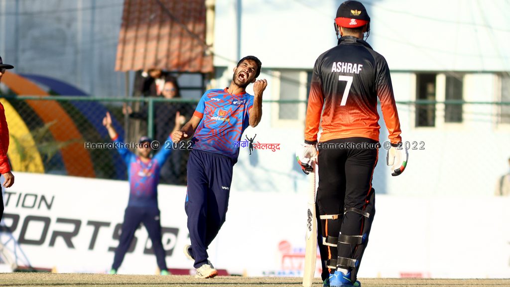 Kathmandu’s pacer Azmatullah Omarzai claimed 3 wickets giving away 25 runs bowling 4 overs. Moreover, Basir Ahamad took 2 wickets whereas Kamal Singh Airee, Abinash Bohara, Anil Kharel, and Sunam Gautam booked 1 each in their names.