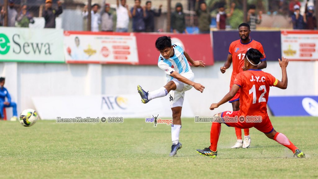 Hisub Thapaliya doubled Jawalakhel’s lead in the 76th minute with a well-tapped-in goal from Fode Fofana’s powerful cross.